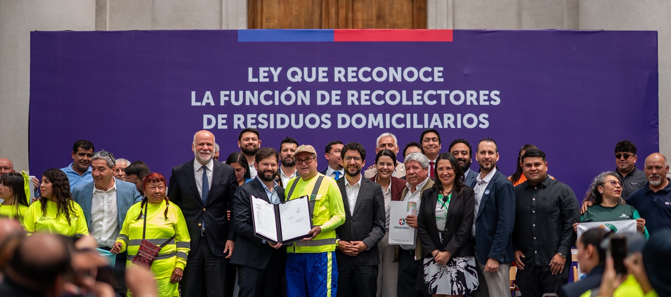 S.E. el Presidente de la República, Gabriel Boric Font, encabeza la promulgación de la Ley que reconoce la función de los Recolectores de Residuos Domiciliarios