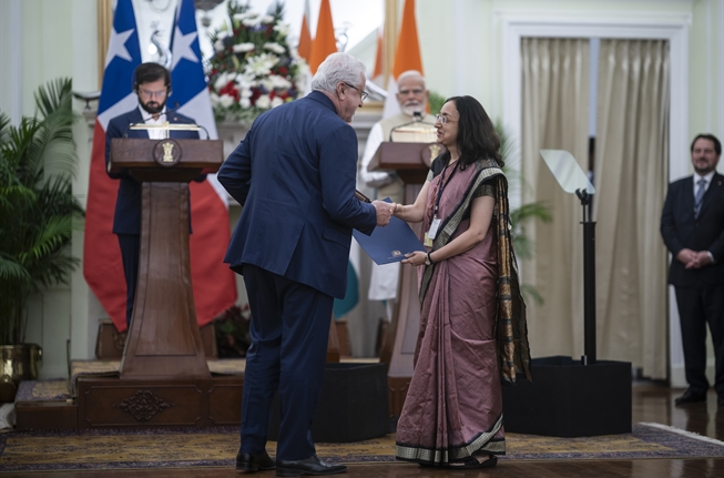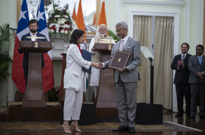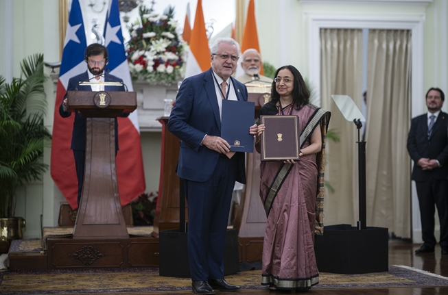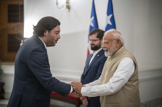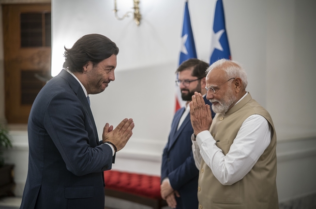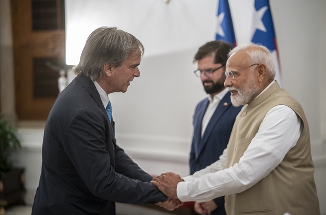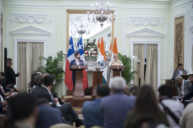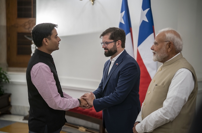 En tanto, el Primer Ministro Modi destacó el “espíritu de amistad y el compromiso de fortalecer las relaciones entre ambas naciones. “Para India, Chile es un socio importante y amigo desde América Latina y hoy nuestras delegaciones han identificado varias iniciativas para mejorar nuestra cooperación en la década venidera. Apreciamos la cooperación de beneficio mutuo en el comercio y la cultura. Y también existe mucho potencial no explotado en otras áreas, hemos instruido a nuestros equipos a explorar áreas de cooperación económica estratégica, especialmente con énfasis en nuestra alianza de minerales críticos y trabajar en la cadena de suministro de agricultura. Si acercamos nuestras experiencias, podemos enfrentar el desafío de seguridad alimentaria”.