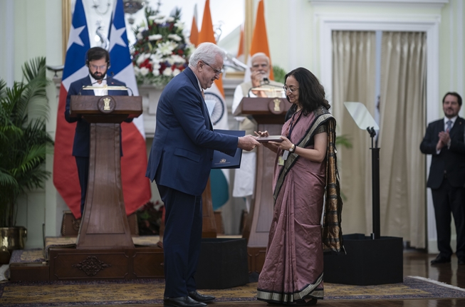 Al mismo tiempo, el Jefe de Estado anunció que “celebramos la primera firma de un programa de intercambio cultural entre el Ministerio de las Culturas las Artes y el Patrimonio de Chile y el Ministerio de Cultura de la India, lo que permitirá, por nombrar algunos ejemplos, la promoción de las artes y la cultura a través de la participación de festivales internacionales o la generación de intercambio en el área de música y danza”.