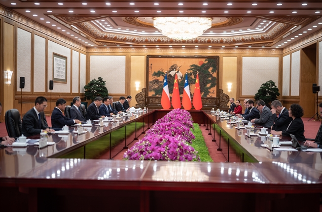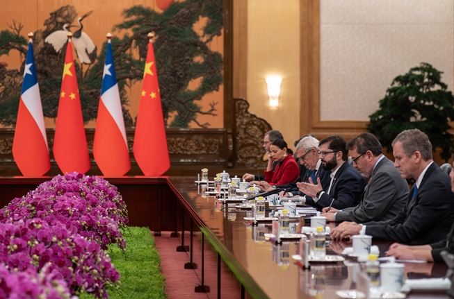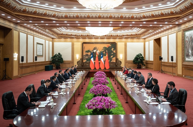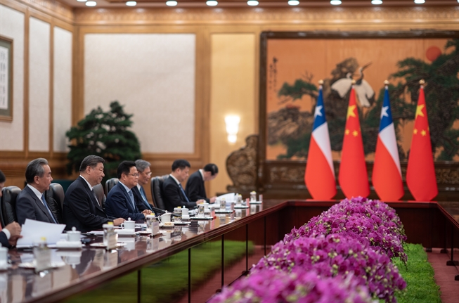 Y agregó: “En el contexto internacional, fortalecer la cooperación entre los dos países tendrá un efecto demostrativo aún mayor. Estamos dispuestos a trabajar junto a ustedes para profundizar aún más la cooperación en todos los ámbitos entre ambos países. Fortalecer la cooperación multilateral, seguir enriqueciendo la relación estratégica integral entre China y Chile, promover conjuntamente la paz y el progreso mundial”.