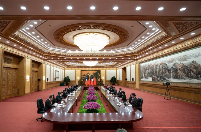El Presidente Xi Jinping expresó que “esto refleja plenamente la importancia que ustedes le otorgan a las relaciones entre China y Chile, y quiero expresar mi aprecio por eso. China y Chile son firmes defensores del multilateralismo y del libre comercio”.