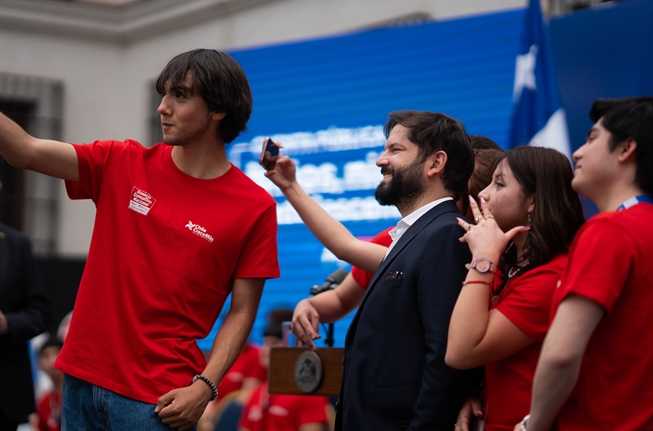"Yo les quiero decir que el hecho de que ustedes estén sentados acá es un reconocimiento, pero es también una responsabilidad, porque estamos del mismo lado y somos responsables de la sociedad que estamos creando. Y ustedes son líderes, son líderes en sus comunidades, en sus liceos, en sus regiones, en sus comunas" agregó el Presidente Gabriel Boric.