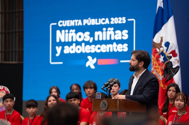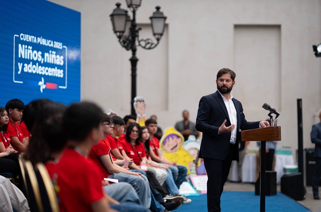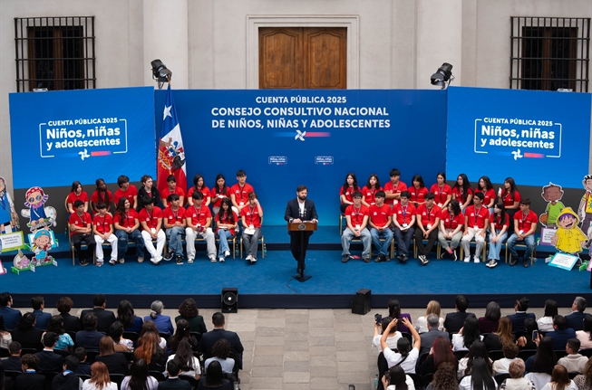 La tarde de este lunes 27 de octubre en el Palacio de La Moneda, el Presidente de la República, Gabriel Boric Font, participó en la Cuenta Pública 2025 del Consejo Consultivo Nacional de Niños, Niñas y Adolescentes junto a los ministros y ministras de Desarrollo Social y Familia, Javiera Toro; Secretaría General de la Presidencia, Macarena Lobos; Educación, Nicolás Cataldo; Salud, Ximena Aguilera; y los subsecretarios y subsecretarias de la Niñez, Verónica Silva; Interior, Víctor Ramos; Evaluación Social, Paula Poblete; Derechos Humanos, Daniela Quintanilla; y Ciencia, Tecnología, Conocimiento e Innovación, Cristian Cuevas.