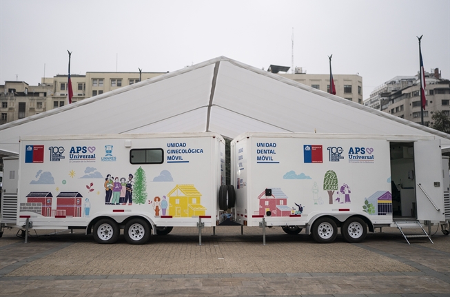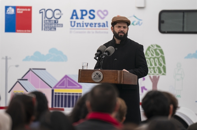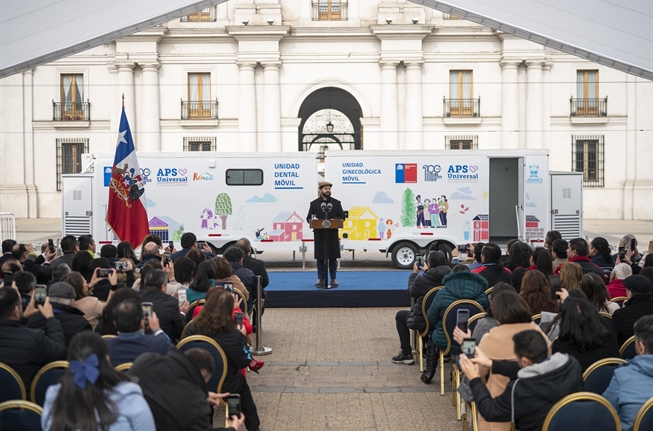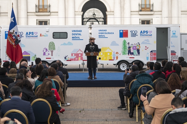 S.E. el Presidente de la República, Gabriel Boric Font, encabeza la entrega de unidades clínicas móviles de Atención Primara de Salud Universal