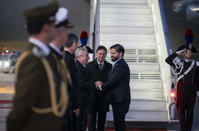S.E. el Presidente de la República, Gabriel Boric Font, aterriza en la ciudad de Roma