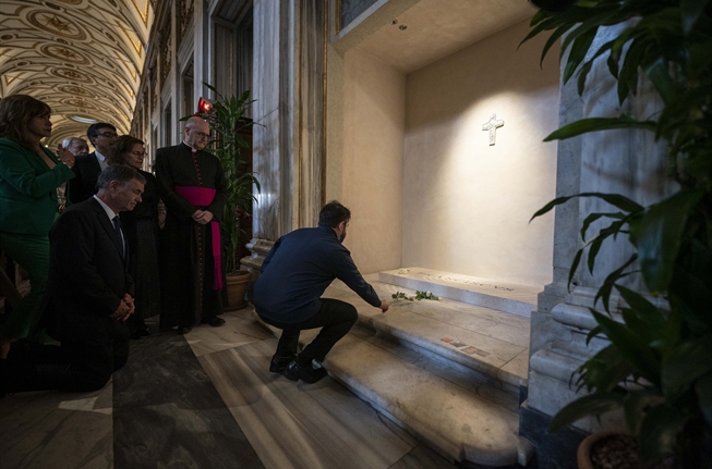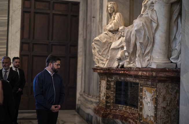 S.E. el Presidente de la República, Gabriel Boric Font, rinde homenaje en la tumba del Papa Francisco