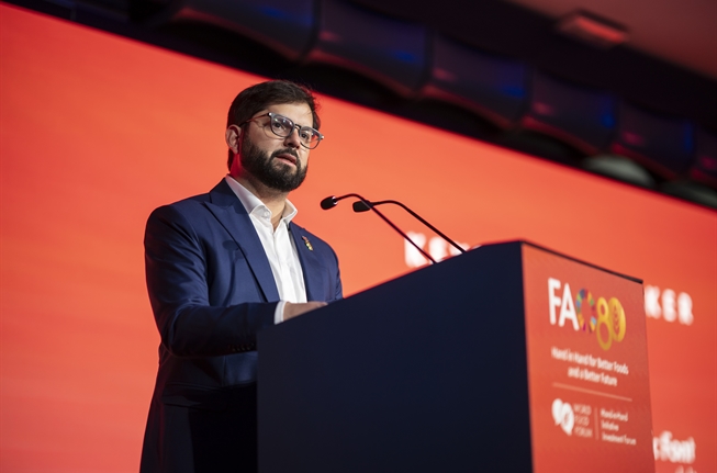 S.E. el Presidente de la República, Gabriel Boric Font, encabeza la ceremonia inaugural del Foro de Inversión de la Iniciativa Mano de la Mano de la Organización de las Naciones Unidas para la Alimentación y la Agricultura