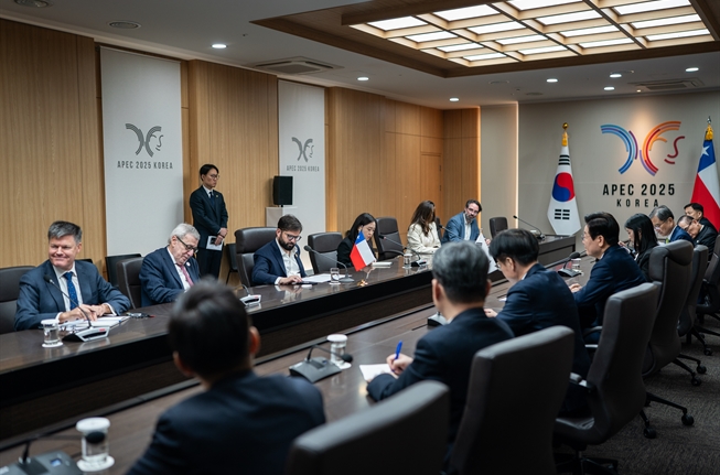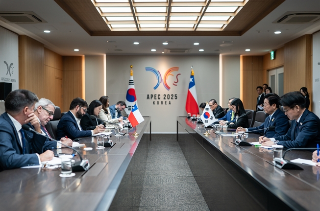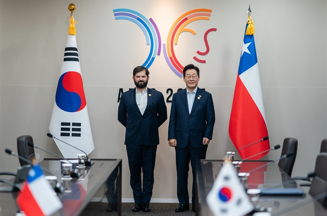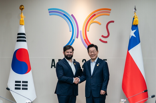S.E. el Presidente de la República, Gabriel Boric Font, sostiene una reunión bilateral junto al Presidente de la República de Corea, Lee Jae-myung