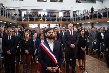 S.E. el Presidente de la República, Gabriel Boric Font, junto a ministras, ministros, subsecretarias y subsecretarios de Gobierno, asisten al Servicio de Acción de Gracias de las Iglesias Evangélicas de Chile 2025
