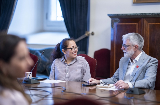 En el encuentro también estuvieron presentes personalidades destacadas por su vinculación con la figura de Gabriela Mistral: Diego del Pozo, Agregado Cultural de Chile en Francia; Carmen Gloria Valladares, sobrina-nieta de Mistral; José Goñi, exembajador y exministro de Defensa, autor de la novela histórica Gabriela, su difícil camino al Nobel (Catalonia, 2024); Soledad Falabella, especialista en Gabriela Mistral; Kenza El Ghali, embajadora de Marruecos en Chile y difusora de la obra de Mistral.
