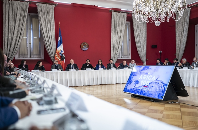 Este lunes 9 de junio en el Salón Montt Varas del Palacio de La Moneda, el Presidente de la República, Gabriel Boric Font, acompañado del ministro del Interior, Álvaro Elizaldel; la ministra de la Secretaría General de la Presidencia, Macarena Lobos; y el subsecretario de la Secretaría General de la Presidencia, Nicolás Facuse, encabezó la inauguración de la primera sesión de la Comisión Asesora Presidencial “Arica 100”, la que se encargará de asesorar en la definición, diseño y programación de la conmemoración del centenario del Tratado de Lima y que incorporó Arica a Chile.