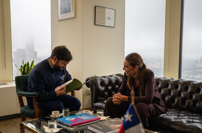 Este jueves 25 de septiembre, el Presidente de la República, Gabriel Boric Font, se reunió con la ex primera ministra de Nueva Zelanda y fellow de la ONG Conservation International, Jacinda Ardern, para conversar sobre la protección de los océanos, la Antártica y la biodiversidad marina.